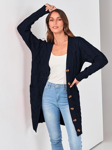 Material:Made of soft and lightweight knit fabric, this long sweaters for women is the perfect addition to your fall and winter wardrobe.Stay cozy and stylish with our womens sweaters cardigan. S=US 4-6, M=US 8-10, L=US 12-14, XL=US 16. Features:Long cardigans for women,chunky cardigans for women,sweater coats for women long,womens cardigan sweaters with pockets,cable knit cardigan women,fall cardigans for women 2023,button down sweater cardigan,open front cardigans,womens winter cardigan,open front outerwear,chunky knitwear Design:With open front design and button-down closure,this long cardigan sweaters for women offers a versatile and effortless look that can be easily dressed up or down for any occasion.It features two side pockets, providing a convenient place to store your essentials. Easy Match:This chunky cardigan is a must-have for fall and winter.Its lightweight yet warm construction makes it perfect for layering and adding a touch of cozy sophistication to any outfit.Dress it up with a pair of jeans or wear it over a dress for a more refined look. Occasions:This casual style long sleeve cardigan allows to create various looks for different occasions. Whether you're attending a casual gathering or a special event, this long sweater cardigan is your go-to outerwear. #54,127 in Clothing, Shoes & Jewelry ( ) #350 in