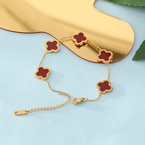 ♣.《Idea》: Legend four-leaf clover symbolizes luck, one hundred thousand beads of clover can only find a four-leaf clover, four leaves respectively represent true love, health, reputation, wealth! ♣.《Product size》: The Clover Bracelet is 6.41 "+1.77" extension chain, adjustable extension chain design meets most wrist requirements. ♣.《Product Material》: High-quality stainless steel,anti-allergy,does not fade,Make your experience feel perfect. ♣.《Suitable for the crowd》: Nothing makes a woman happier than jewelry! Give the gift of jewelry with these stunning gold clover Bracelets for yourself or for your mother, daughter, girlfriend, wife, or friend. They are the perfect choice for birthdays, Valentine's Day, Mother's Day, or any other special occasion ♣.《After-sales service》: If there is problem with the products, you can contact us through your Amazon order interface. The after-sales team is always ready to solve the problem for you until you satisfaction.