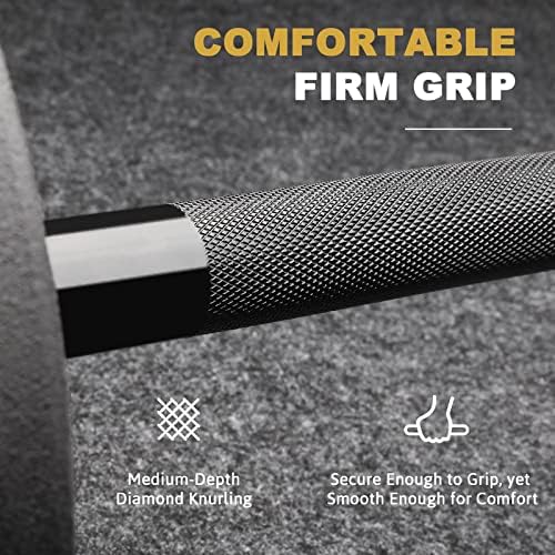Commercial Quality for Home & Gym: Made of the same material as our Olympic barbells, our heavy duty 4 ft training bar will stand the test of time. The high-quality seamless steel was heat-treated to reach the weight capacity of 500LBS. The shaft and sleeves feature a unique black E-coat finish, delivering superb corrosion and oxidation resistance over time and a look that is stylish and aesthetic in your home gym. Outstanding Spin: Extra thick brass bushings and premium bearings in the sleeves makes for buttery smooth rotation. Snap ring retention system secure all the components of the sleeves for a lifetime. No more tightening the hex bolt end sleeves constantly. Medium-depth Knurling Provides Better Grip Feel: 1.5mm deep diamond knurling with specially trimmed top offers enough gripping power while delivering comfortable grip feel. 28mm diameter shaft is easy to hold and one knurl mark at either side helps to place your hands at correct positions. Specifications: Full length is 47.2” (4ft); Weighs 20LBS; 500 pounds weight capacity; 87,000 PSI tensile strength; 28mm handgrip diameter; No center knurl; No knurl marks. Shaft length is 31.5’’; Loadable sleeves are 7.1” long and 2” in diameter to fit Olympic weight plates. Excellent Performance in All Your Workouts: It is perfect for daily strength training and bodybuilding exercises that can be performed without the need of a power cage - bicep curls, upright rows, bent over rows, deadlifts, presses, hip thrusts, HIIT workouts, etc. Also, with its sleek all-black design, it is a gorgeous equipment for limited space home gym. Buy with Trust in LIONSCOOL: We trust the durability and strength of our barbell so much that we provide a LIFETIME WARRANTY against bending on our barbells, and we always stand by the quality of our products and offer excellent customer service you expect. Just buy with confidence! The bar also comes with a workout poster. Spring collars are not included. It is definitely the “Bang for Buck” bar for sure.