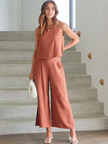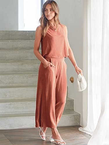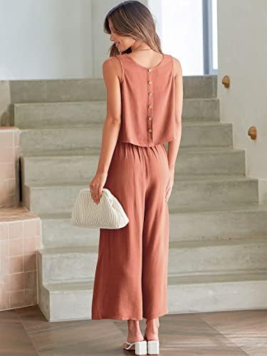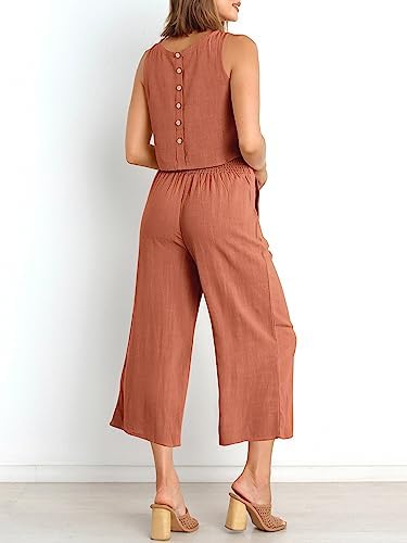 ANRABESS Women's Summer 2 Piece Outfits Sleeveless Crop Top Capri Wide Leg Pants Jumpsuit Linen Lounge Beach Travel Sets