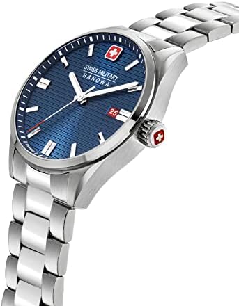 Swiss Military SMWGH2200302 Men's Analogue Quartz Watch with Stainless Steel Strap, Silver, Bracelet