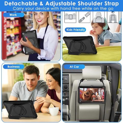 ?【COMPATIBILITY】- Heavy duty cover compatible with Lenovo Tab M10 Plus 3rd Gen 10.6 inch 2022 (Model: TB-125F/ TB-128F). ? [ATTENTION]: NOT FIT Tab M10 FHD Plus 10.3" 2nd Gen 2020 (TB-X606F/X) or other model tablets. ❤ [Warm Tips]: Please check the tablet model and camera position refer to the model compatibility image [2] before purchase (Click "Settings-System-About Tablet-Model") ?【3-LAYERS FULL BODY PROTECTION】- Funda para Lenovo Tab M10 Plus 3rd Gen case for kids combined of hard PC top frame bumper (NOT INCLUDE SCREEN PROTECTOR) + polycarbonate inner shell + soft silicone outer cover with corner protection design. This hybrid heavy duty shockproof Lenovo M10 Plus TB-125FU case provides total full body protection against scratches, shocks, fingerprints and dust ?【360 DEGREE ROTATING KICKSTAND】- Funda para Lenovo Tab M10 Plus 10.6" kids case for TB125FU could be swivelable adjusted to multiple angles and make your tablet works like a laptop, so it's perfect for typing or watching videos. Free your hands for other entertainments to avoid any joint pain. The kickstand also work as a portable handle ring or hanging on hook ?【SHOULDER STRAP】- Kids case for Lenovo Tab M10 Plus 3rd Generation come with a shoulder strap (length adjustable), it can be suspended in the car seat back for children watching safety. Lenovo M10 Plus 3rd Gen 10.6" protective cover shell with shoulder strap, it's convenient for adult or children to carry out for outdoor activities ?【MILITARY GRADE PROTECTION & AFTER-SALES SERVICE】- Lenovo Tab M10 Plus 2022 Case 10.6 inch heavy duty tablet cover enhanced drop protection with extra shock absorption to protect your precious device. ❤ If the product you've received is defective (not included man-made damage), don't hesitate to seek advice from us for replacement or refund