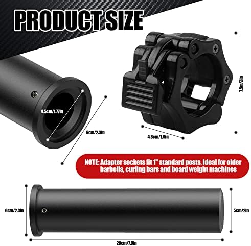 NewBEP 2PCS Olympic Adapter Sleeve 7.8" with Olympic Barbell Clamps 2", Converts 1" Standard Weight Plate Posts to 2" Olympic Weight Plate Posts, Removable end Cap