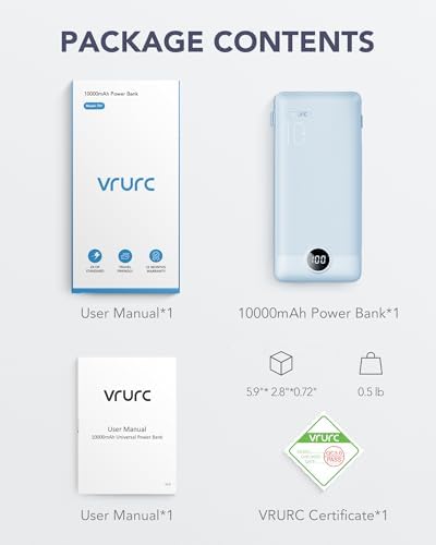 VRURC Portable Charger Built-in Cables and AC Wall Plug, USB C Power Bank 10000mAh, [2023 Upgraded Version] Phone Charger Compact Lightweight External Battery Pack for Smart Phones, Tablets etc-Blue