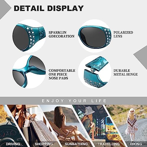 HAOLOTA Polarized Sunglasses for Women, Rhinestone Wrap Around Sunglasses with UV400 Protection