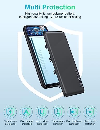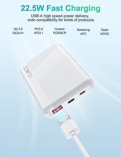 Portable Charger Small and Slim: Compact 10000mAh power bank, weight only 210g and 16mm thickness, grip on hand or put into your bag easily, this portable charger is excellent for international travelling or outdoor activities, take on plane or train. Note: Charge for Phone 15 series need specified cord. Battery Pack with High Speed: The charging bank has USB-C 20W bidirectional fast charging, charge your iPhone 12 Pro from 0% to 100% within 45 minutes. the USB-A provide 22.5W power delivery for iPhone, Samsung, LG, Sony, Motorola, Nokia cell phone and more. Charge with Confidence: Portable battery charger adapt the premium lithium polymer battery cell, ABS plastic shell, built-in intelligent current IC, multi protect system keep your phone running smoothly, this battery bank can charge your iPhone 8 3.5 times, Samsung S21 2 times. Dual Inputs: You can recharge this external battery through the Micro USB or USB-C, can fully refill the battery by the 10W Micro cord in 5 hours, just need 3.5 hours by the above 20W USB C charge cord, always have a full energy external charger, not lack of electricity during working or vacation. What You Get: 2x 10000mAh phone power bank, 2x Type-C charge cord, 1x user manual. We provide 7 day 24 hours promptly customer support, your satisfaction is our desirable goal. hope our portable charger power bank can bring you an joyful experience, have a nice day!