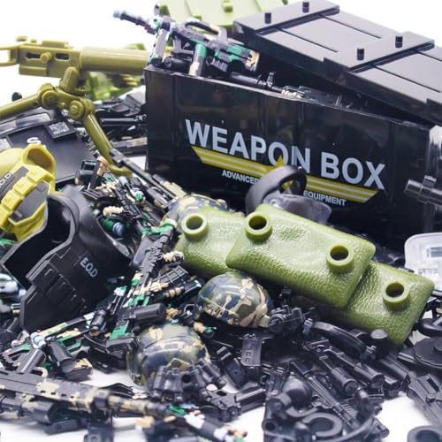200+ Pcs Military Weapon Pack Accessories Kits Toys, Swat Team Building Block Toys, Military Soldier Style Weapon Sets, Army Equipment Gear Sets, Accessories Compatible with Major Mini figure