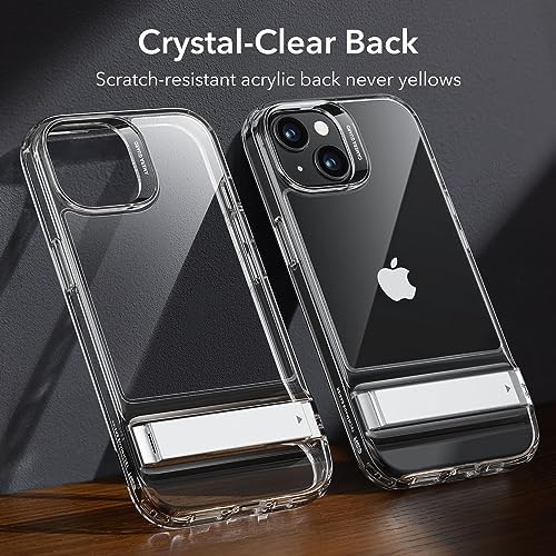 ESR for iPhone 15 Plus Case, Metal Kickstand Case, 3 Stand Modes, Military-Grade Drop Protection, Supports Wireless Charging, Slim Back Cover with Patented Kickstand, Boost Series, Clear