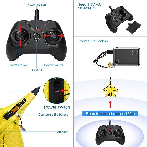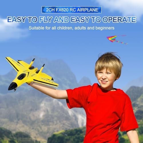 RC Airplane 2CH RC Plane Ready to Fly 2.4GHz Remote Control Plane SU35 RC Jet Easy to Fly Airplane Toys for Boys Gift for Kids Beginners with Night Lights USB Charging(Yellow