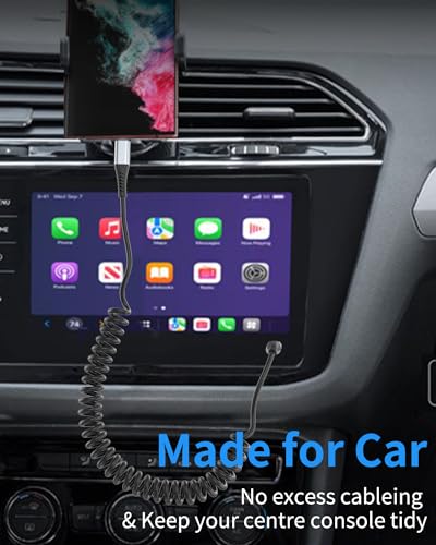 ✅【USB C Cable for Car】The retractable usb c cable is designed with a retractable spring shape, no twisting, no knotting, stretching freely, not taking up space, and easy to carry. Using it in the car can effectively save space and reduce clutter. Perfect for travelling, and the flexible length can cope with a variety of scenarios. ⭐【Flexible Length】The length of coiled usb c car cable in its natural state (unstretched) is 1feet/12inch, the effective stretched length is 1.5 feet-2 feet, suitable for car front seat. ❤️WARM TIPS: The usb type c car charger fast charging cord may be slightly tight on first use, it will be more comfortable to stretch after a few times of use. ✅【Fast Charge & Data Sync】The coiled usb c charger cable fast charging can provide 3A fast charging and 480Mbps data transfer speed. Built-in high purity copper wire ensures faster and more stable charging. ✅【More Durable】Aluminium alloy charging head and elongated tail make the usb c charging cable coiled has 20 times oxidation resistance, 45000+ times bending life, super long service life. ★You will get 12 months after-sale customer service for any quality related issues. ✅【Wide Compatibility】 2 Pack x Coiled USB A to USB C Cable compatible with Android Auto, Apple carplay, iPhone 15/15 Pro/15 Plus/15 Pro Max, iPad Air 4, iPad mini 6, Macbook Pro, Chromebook Pixel, Moto Z8, Moto Z Droid, Galaxy S23 S22 Ultra/S20+ Ultra/S10/S9/S8, Google Pixel 3/3XL/2/2XL, Huawei P20 P30 Pro, Mate 20 10 Pro, 8/9/Mix 2/Mix 3, and other USB-C devices. #539 in