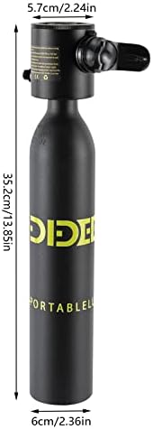 ?【Stable Oxygen Supply】This snorkeling equipment has two independent 0.5L oxygen cylinders can provide you with a stable supply of oxygen, thus ensuring your diving safety. ?【Efficient Filtration】This outdoor rescue cylinder tank unidirectional air nozzle can effectively filter harmful substances, so you can breathe pure air. ?【Safety Protection】 The built-in explosion-proof valve and luminous waterproof pressure gauge make its pressure value clearly visible at a depth of 80 meters underwater and will automatically release the pressure for explosion-proof, thus ensuring your safety in the process of use. ?【Easy to Carry】The compact structure of the mini scuba tank (13.86 inches high, 2.36 inches wide) makes it more comfortable to wear, thus not overburdening you while diving. The carry bag inside the package also help you carry it more conveniently anywhere you go. ?【Easy to Maintain】 The detachable design and mirror-treated smooth surface make it easy to clean, you just need to wipe it gently with a dry rag to make it look new.