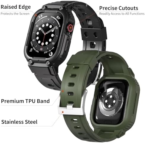 【Compatible Models】Shalila rugged bands with bumper case are compatible with Apple Watch 38mm 40mm 41mm. This strap is a perfect replacement band for iWatch series 9/8/SE/7/6/5/4/3/2/1. Widely adjustable length fit for 6.49-8.62" (165-219mm) wrist. Please check the model on the back of your watch to choose the right size. 【All-Round Protection】Made of high-quality TPU material which is lightweight but very durable, scratch-resistant and comfortable, this Military-grade protective bumper case with band featuring the raised edge can protect your Apple Watch from any hard objects. 【Easy to Operate】The snap-in design makes this sport band with shockproof cover fast and easy to install or remove and never fall off. And with precise cutouts for buttons and crown, it's readily accessible to all the functions of the watch. No need to remove the iWatch bumper case when charging. 【Mechanical Aesthetic】The sophisticated mechanical aesthetic design of this rugged armor band adds style to your outfit while protecting your watch from all sides. Perfect for climbing, hiking, rock climbing, cycling and other outdoor sports. 【Fashion Gift & 24H Online Service】This iWatch wristband is a nice gift for boyfriend/girlfriend for birthday, Christmas, Valentines' Day, Thanksgiving Day, etc. We provide 24-hour online customer service, please feel free to contact us if you any questions! #18,350 in Cell Phones & Accessories ( ) #1,783 in