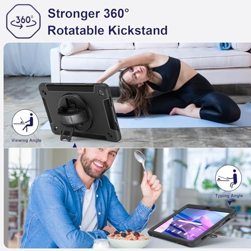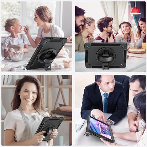 Miesherk Case for Lenovo Tab M10 Plus 3rd Gen: Military Grade Shockproof Case for Lenovo Tablet M10 Plus 10.6" TB-125F/TB-128F with Screen Protector-Rotating Stand-Hand/Shoulder Strap-Black