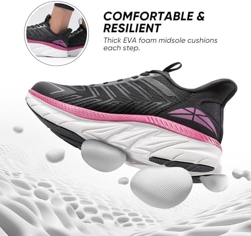 Supportive Midsole & Insole: The thick EVA foam midsole offers rebound and shock absorption, alleviating pressure and impact on the joints with the thickened soft insole. Easy On & Off: With the out-turned collar and elastic no-tie laces you can put on and remove these shoes with minimal effort. Enhanced Stability & Fit: The X-shaped TPU anti-torsion plate in the midsole ensures enhanced stability and prevents twisting that can lead to sprains, while the 3D textured design strengthens the upper for durability and a secure fit. Breathable & Skin-Friendly: The layered mesh fabric upper allows optimal air circulation, while the interior features elastic, skin-friendly Lycra fabric that minimizes friction, ensuring breathability and ventilation. Slip-Resistant Outsole: The specially crafted rubber outsole features a textured design for outstanding slip and abrasion resistance, making this pair ideal for extended walks. #2,923 in Clothing, Shoes & Jewelry ( ) #9 in