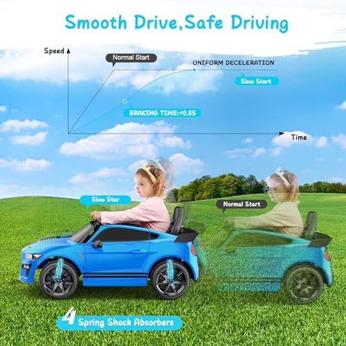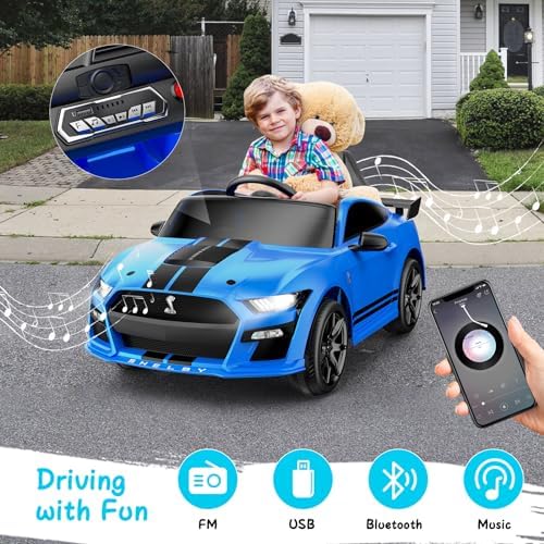 YunTopKids 12V Licensed Ford Mustang Shelby GT500 Ride On Car,Electrical Vehicle Toy for Kids,Battery Powered Car with Spring Suspension/Parent Remote Control/Sound System for Ages 3-5 Years,Blue