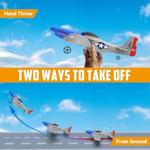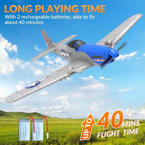 VOLANTEXRC RC Plane P51D Mustang RTF for Beginners, 2.4Ghz 2CH Remote Control Airplane Easy to Fly with Gyro Stabilization, Outdoor Hobby WWII Toy Gift for Kids & Adults (Blue)